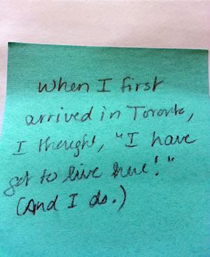 When my dad first came to Canada in 1948, he and his family stayed in an attic here. At night, they would watch the making of donuts on Bloor St. – MK